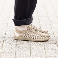 Two cords and a sole. UNEEK adapts to your feet for the perfect fit. with free-moving cords that provide freedom of movement. security. and structure.